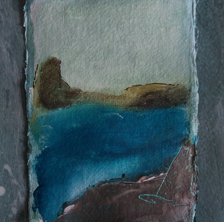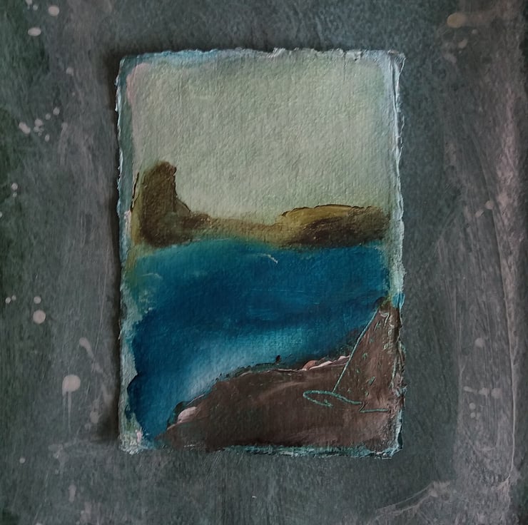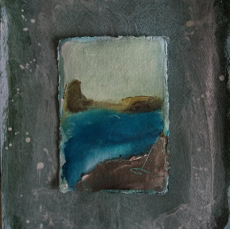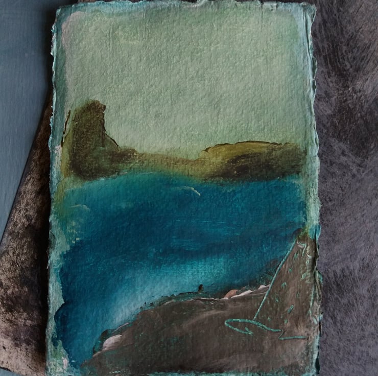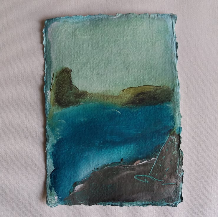 created using gesso, watercolours, and acrylic paints. on a sturdy khadi paper, 320g recycled cotton rag paper. with a lovely natural raggedy edge.