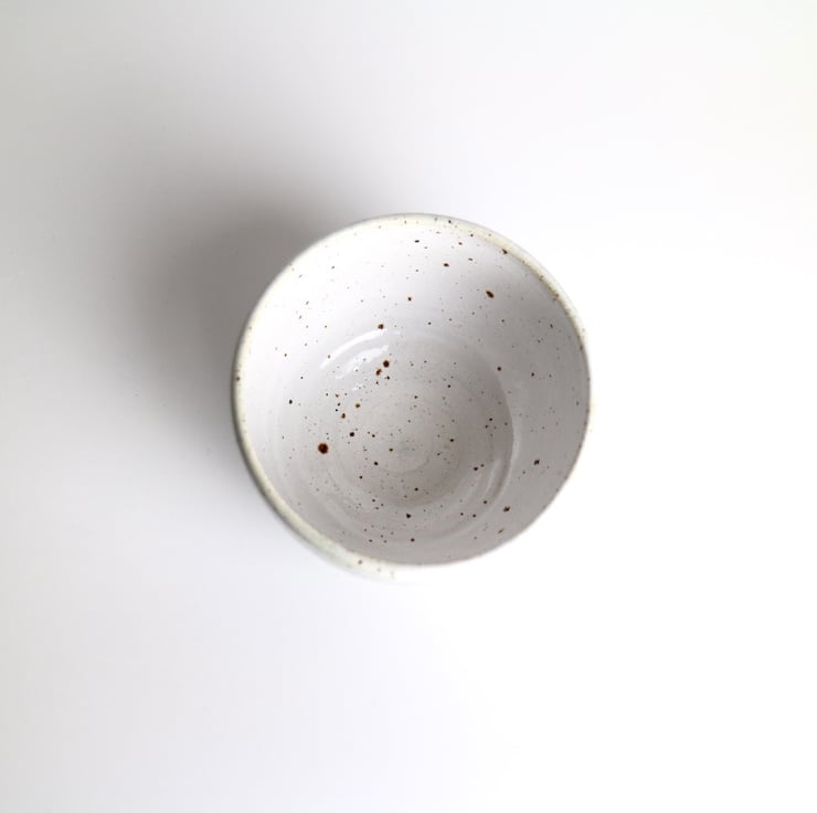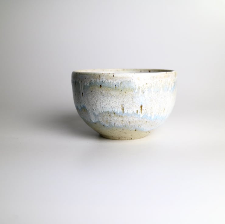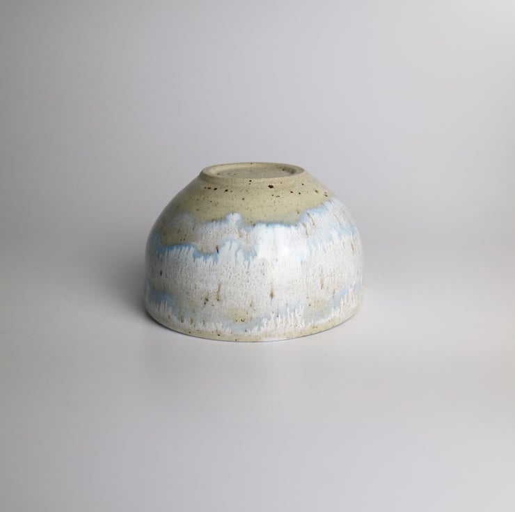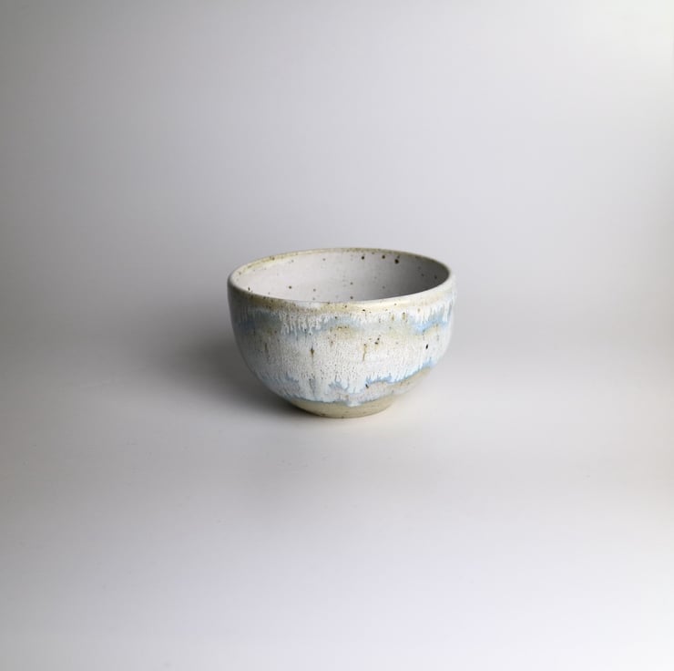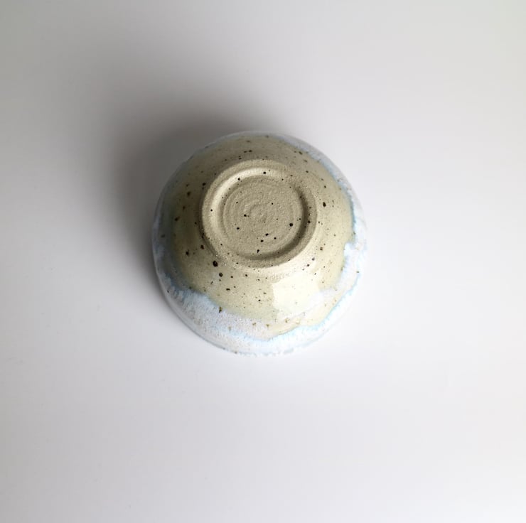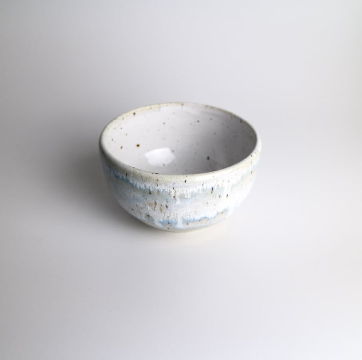 Wheel thrown and glazed in wintery white and blue, this little dip bowl is packed with character.