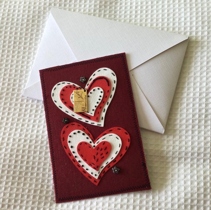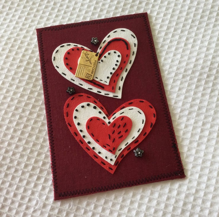This fabric postcard would make a delightful keepsake for Valentines Day or to tell someone how much you care any time of the year.