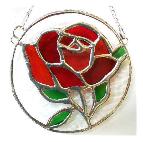 This is a stained glass suncatcher made using the Tiffany copper foil technique.
