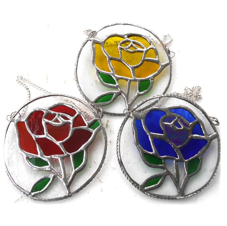This is a stained glass suncatcher made using the Tiffany copper foil technique.