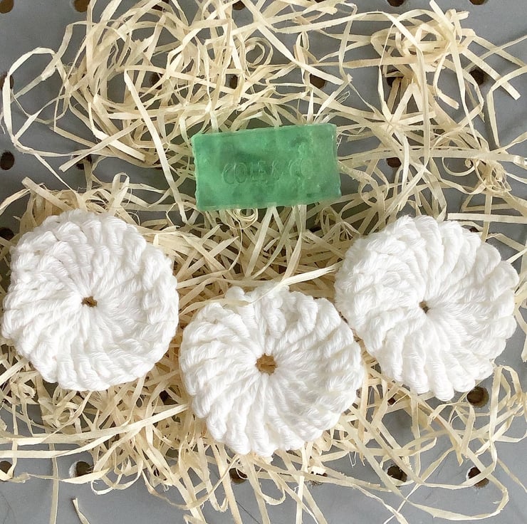 The pack contains seven crochet scrubbies, one for each day to remove your makeup. Also great for exfoliating or applying cream.