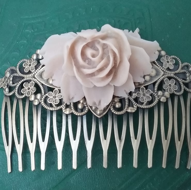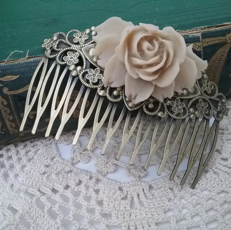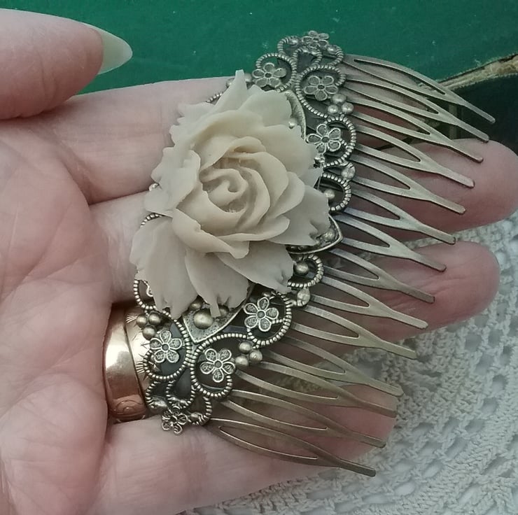 Pretty latte cabbage rose filigree hair comb