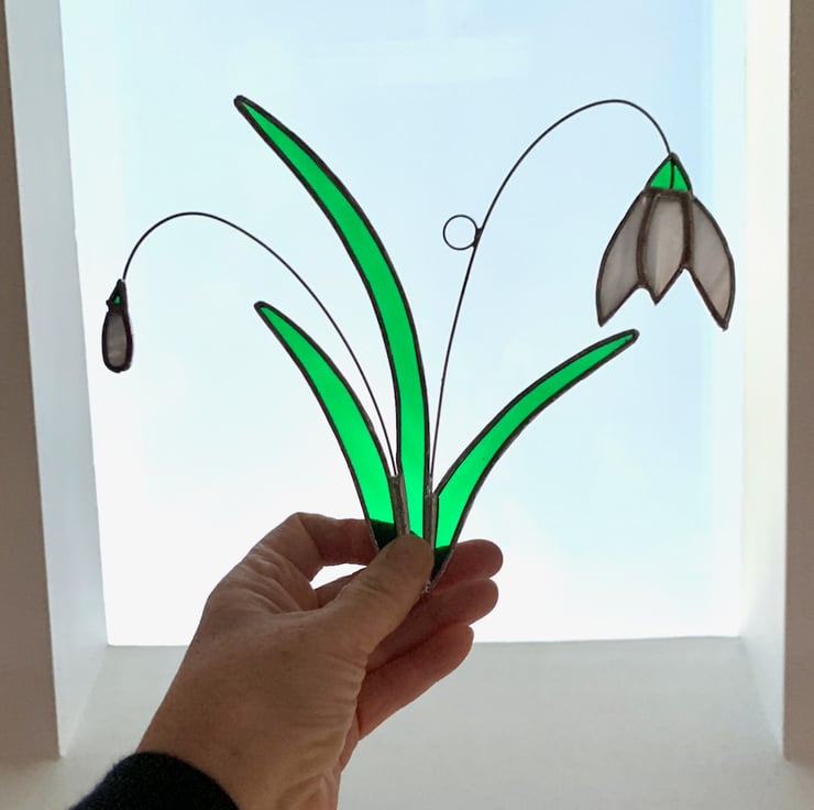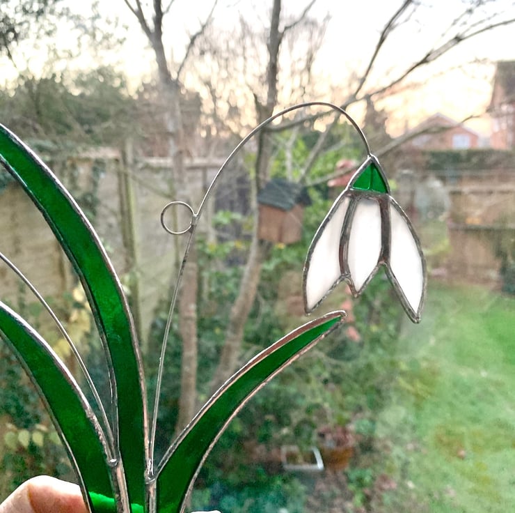 The snowdrops are the first flowers in the garden to flower, so the first to finish but here are some made out of stained glass so you can see them in the window all year round. Mine are just beginning to sprout so should be in bloom in a few more weeks.