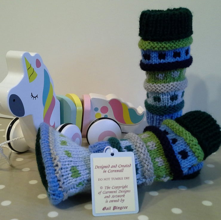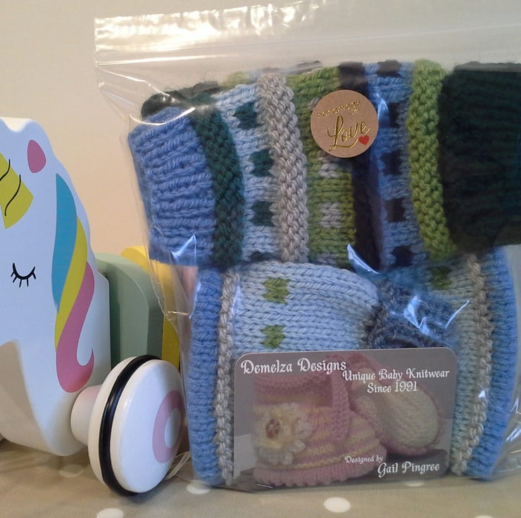 Baby knitwear is designed and hand crafted by Demelza Designs in Cornwall meeting UK baby safety standards, Only branded premuim acylic, acrylic/natural fibre blends or pure natural fibre yarns are used in baby knitwear which conforms to BS984/76 standards.