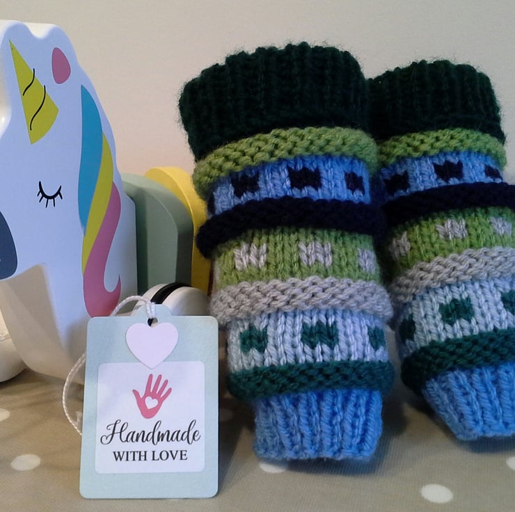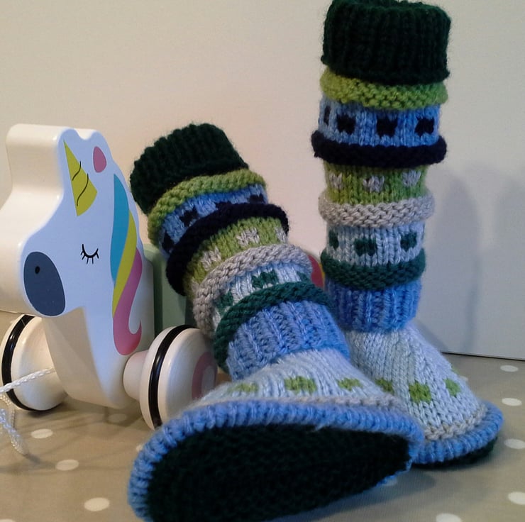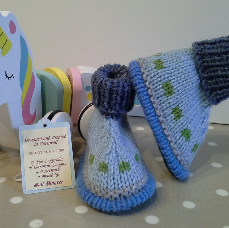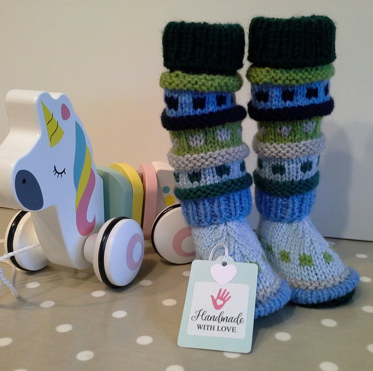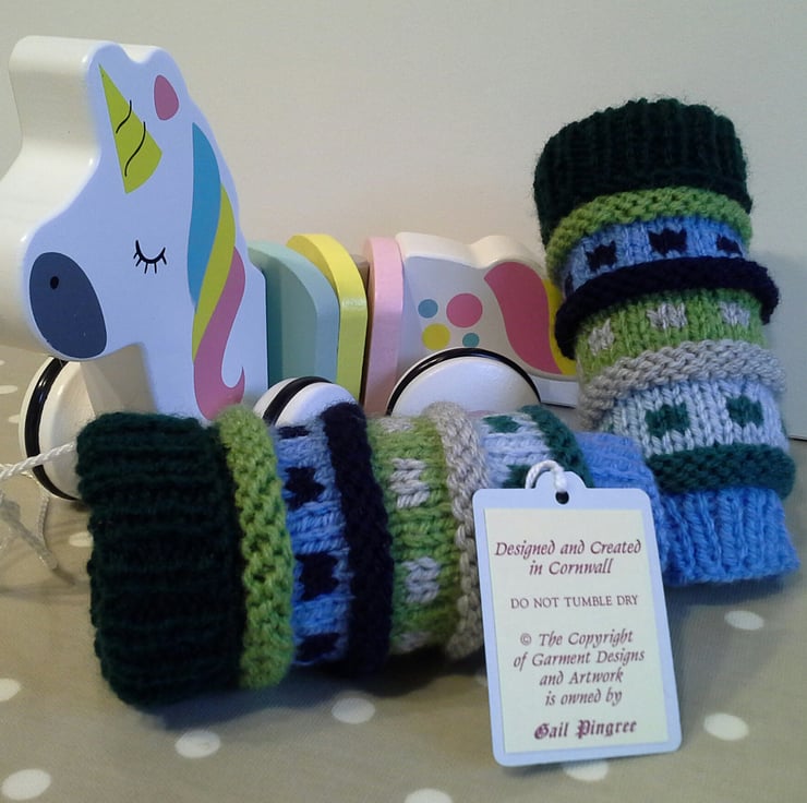 The yarns used for both booties and leg warmers are quality branded machine washable soft British yarns.