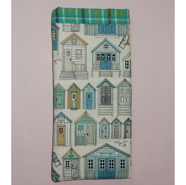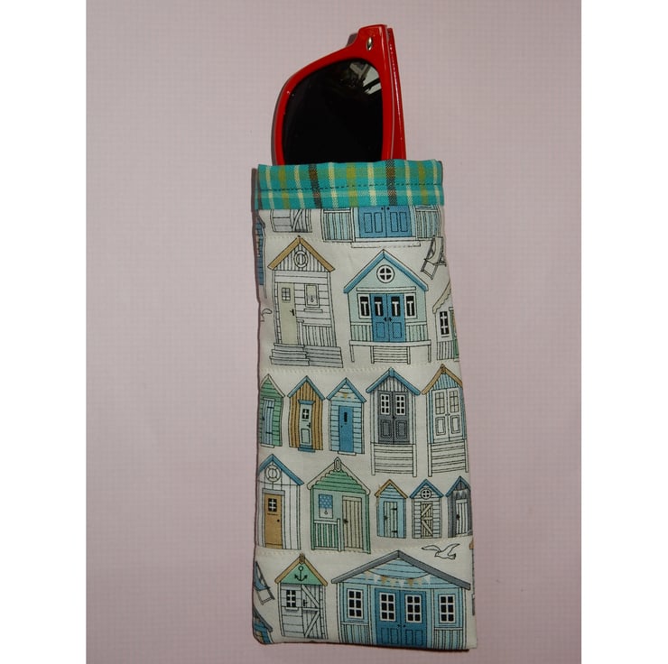 This is a lovely case for your glasses or sunglasses, featuring colourful traditionally styled beach huts. It is made from a cotton print fabric with a toning check lining. It also has a layer of wadding for protection. This is a slip in style glasses case, if you require a case which fastens please view my other listings.
