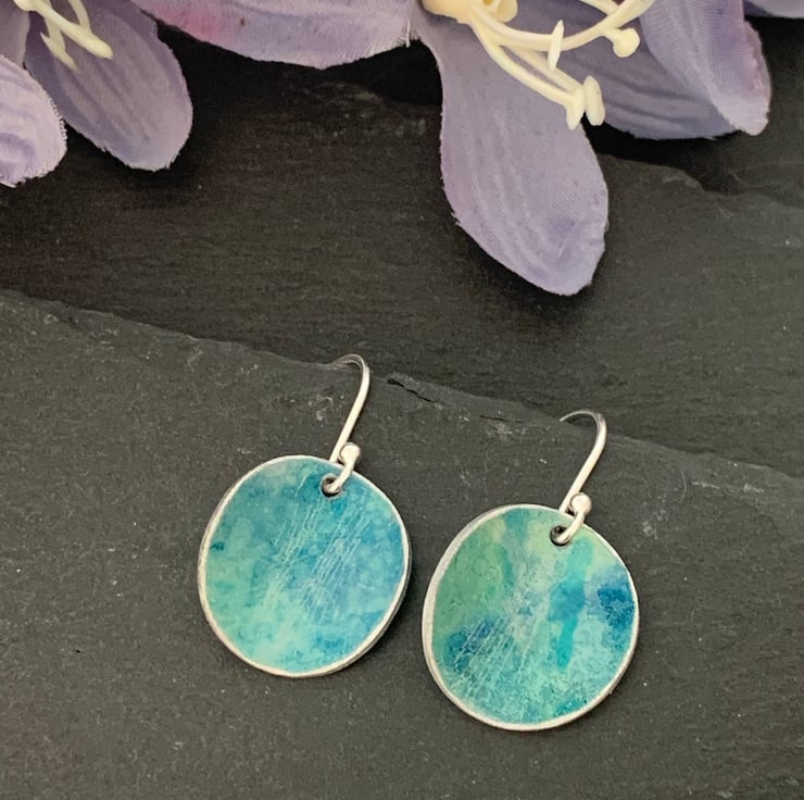 Hand painted and hand crafted Aluminium/sterling silver drop earrings.