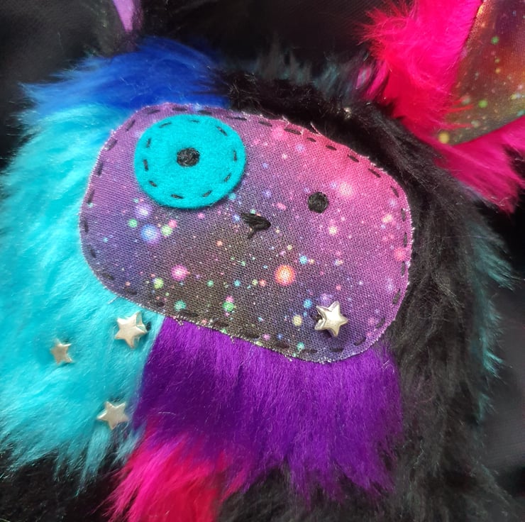 I've spent the last few years at my own slow pace, making a fluff character for each letter of the alphabet. This glam lady is the letter U for Universe and is completely out of the world. Sorry.