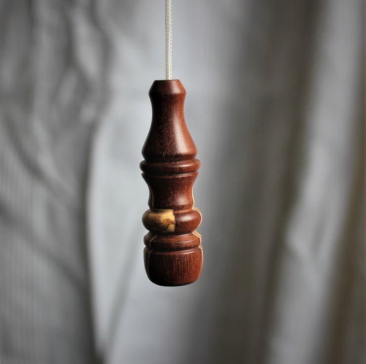 At part way down the toggle there is a small piece of wavy grain olive wood set in.
