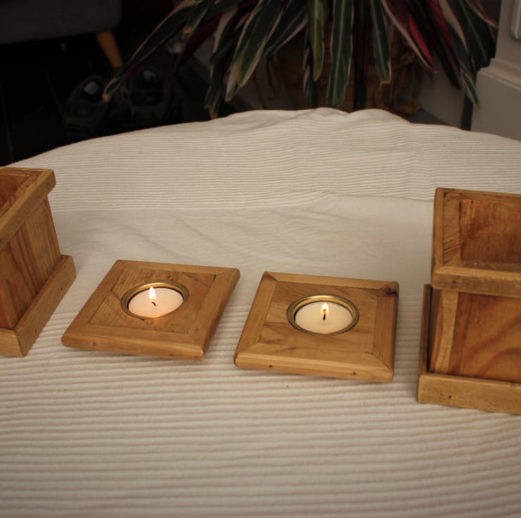 These boxes are simple and yet effective and can bring charm to any dinner table, either at home or in a small restaurant. The lid is a straight forward pull off and push back on and can be left on the table as a tea light stand and the box could be used to hold napkins or serviettes.