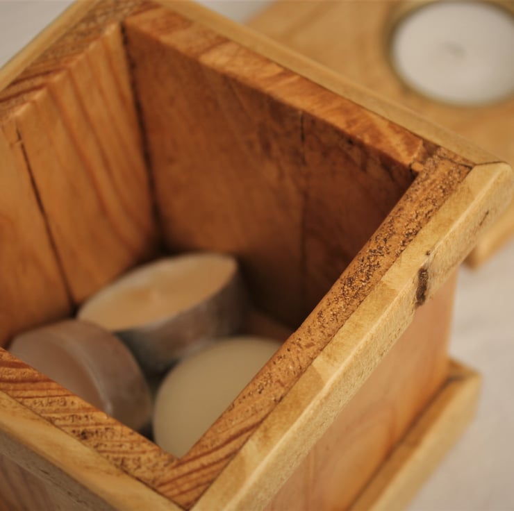 Coming from an antique restoration and pine reproduction furniture background, It has always amazed me in the past, how popular this look is to a lot of people. Something that I cant always understand, yet the proof has mostly been there. And it has been done to death with all sorts of furniture....except for this. I have seen boxes, but not ones to hold a tealight and store more in. And not ones of this size.