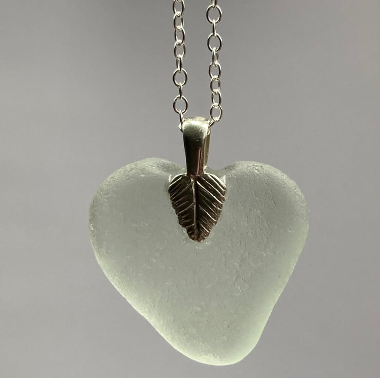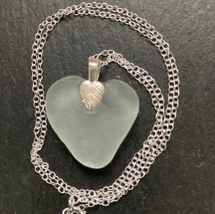 This wonderful white heart shaped piece of seaglass was found on Withernsea beach in the New Year. The addition of a sterling silver bail and 20inch chain has made a unique piece of jewellery ideal for a gift for a special occasion.