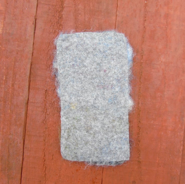 Needle felted with unspun wool onto a piece of pure wool fabric.