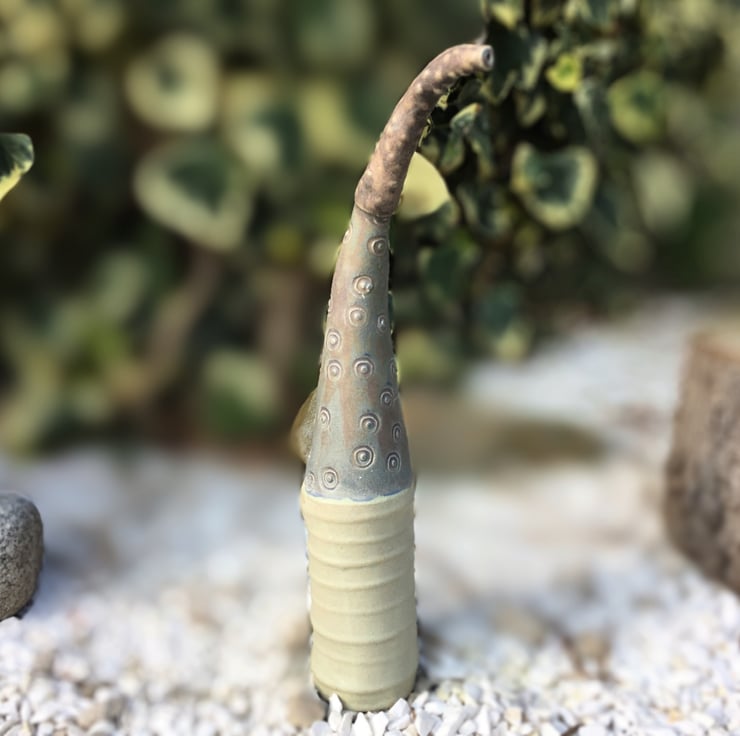 Over the years I have made many vessels varying from very tiny to standing meters tall. This cute piece is inspired by nature such as trees.