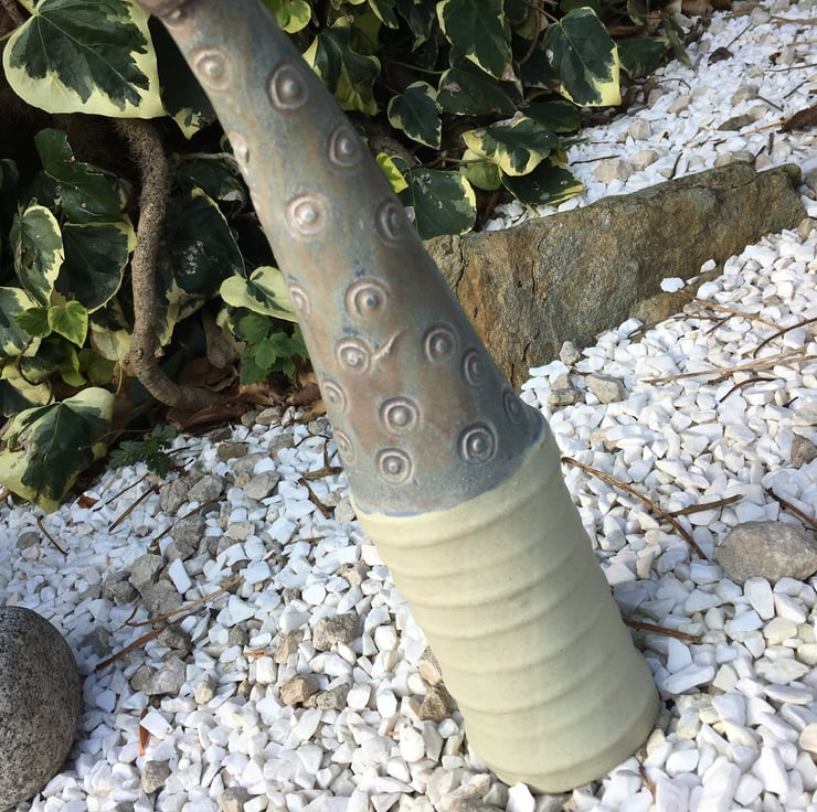 This piece can be placed inside on your mantle piece or window sill or hidden amongst pretty garden plants and flowers. I would suggest if placing the vessel outside that you support it within the soil to avoid windy weather blowing them over.
