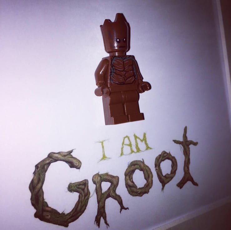 This minifigure version of the awesome Groot has been mounted in to a deep box frame. He has been put in there along with the classic words - I am Groot.
