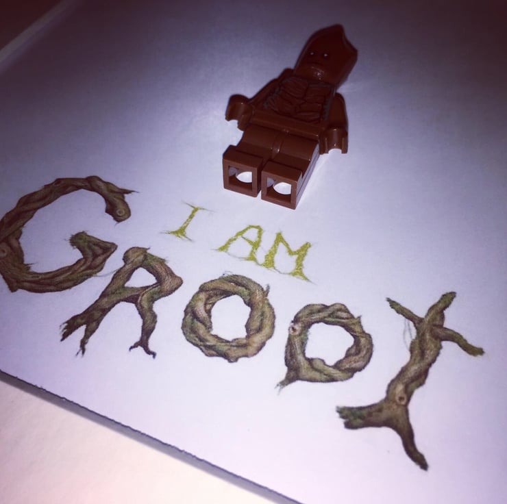 This minifigure version of the awesome Groot has been mounted in to a deep box frame. He has been put in there along with the classic words - I am Groot.