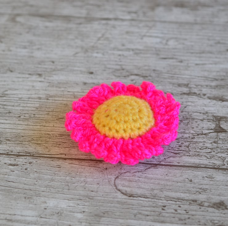 1 crochet shocking pink sunflower filled with toy stuffing and catnip.