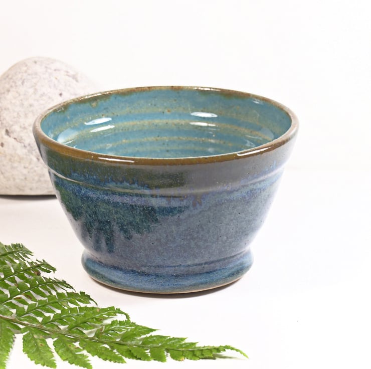 I threw this bowls on the potters wheel using a strong buff stoneware clay. I then added the detailed spiral that sits inside the bowl and turned the base to make a foot ring. It was then fired to a bisque before being glazed in three contrasting and complimentary glazes and refired to 1220C.