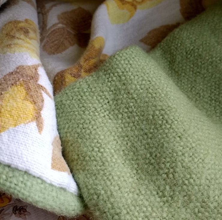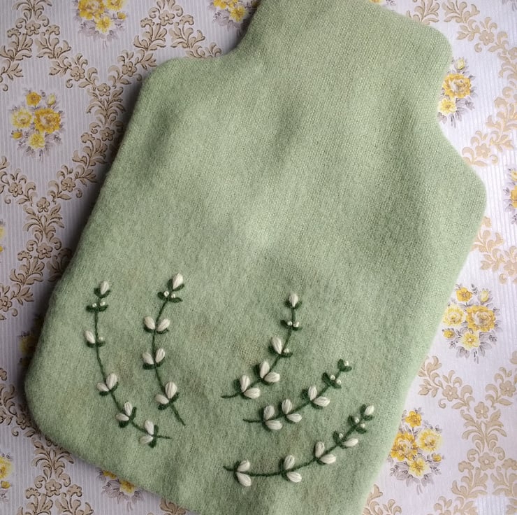 Perfect for snuggling up with in the cold winter evenings ,this hot water bottle cosy is made from a soft apple green coloured Witney vintage wool blanket.