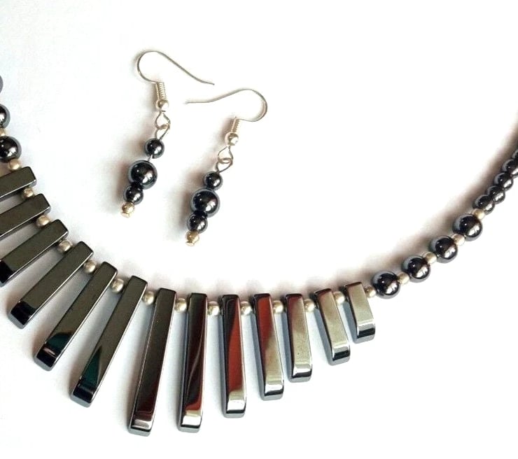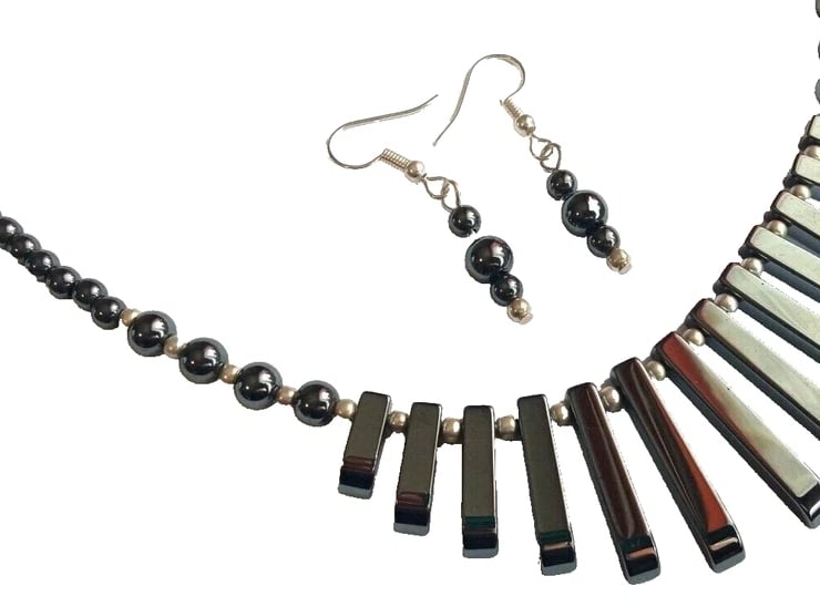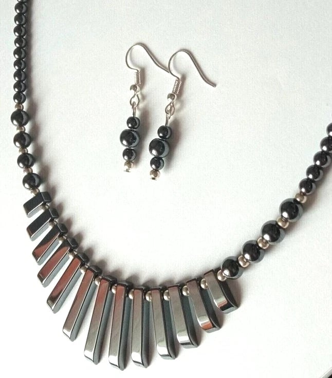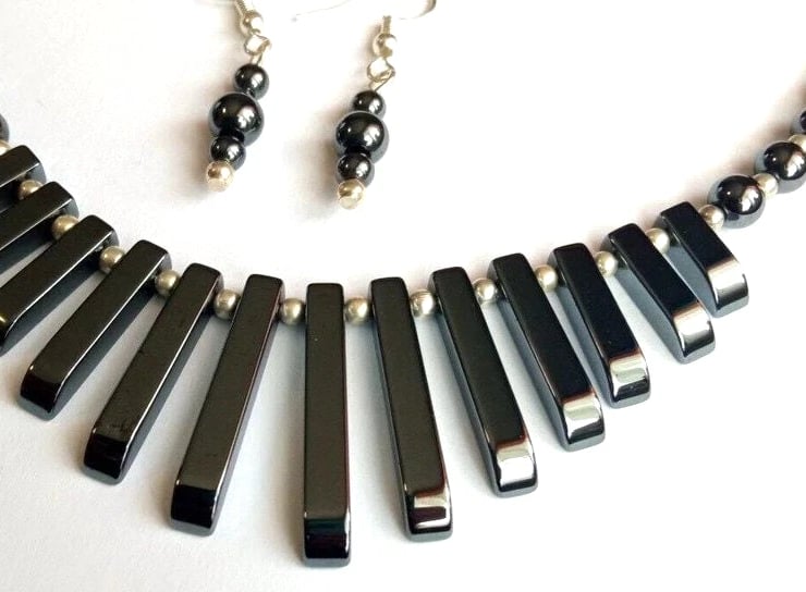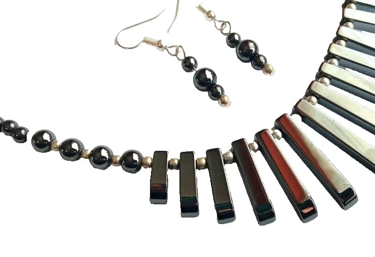 Shiny Black Hematite Gemstone Necklace & Earrings Gift Set