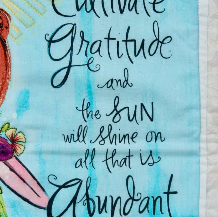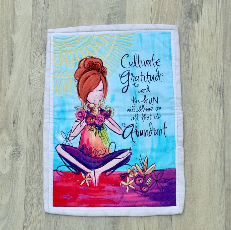 This stunning quilted fabric panel with the quote 'Cultivate Gratitude and the Sun will Shine on all that is Abundant' will look beautiful on your wall or as a table topper. It will brighten your room and send out some good vibes!