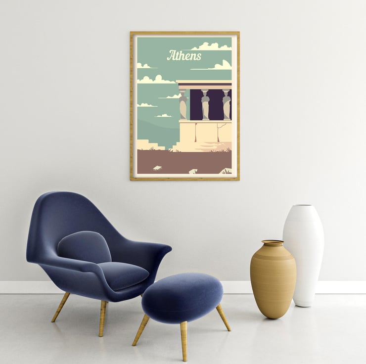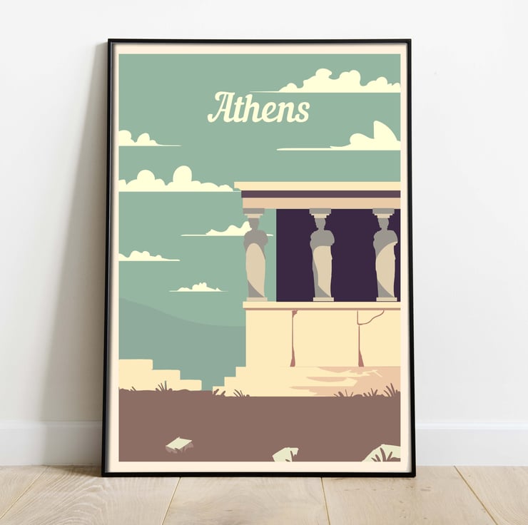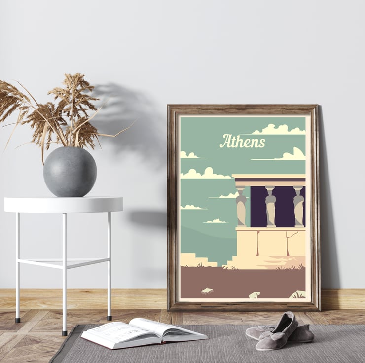 Athens retro travel poster, Greece travel poster