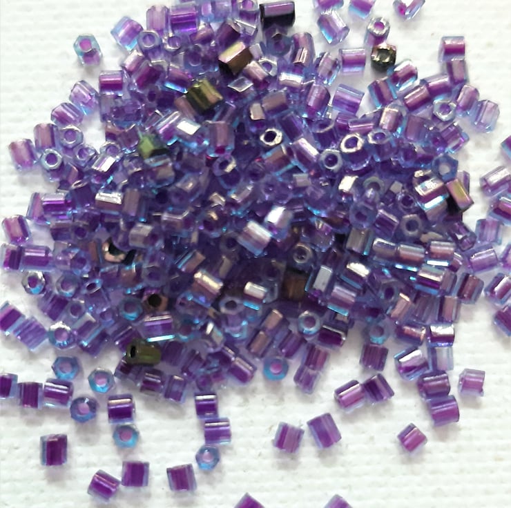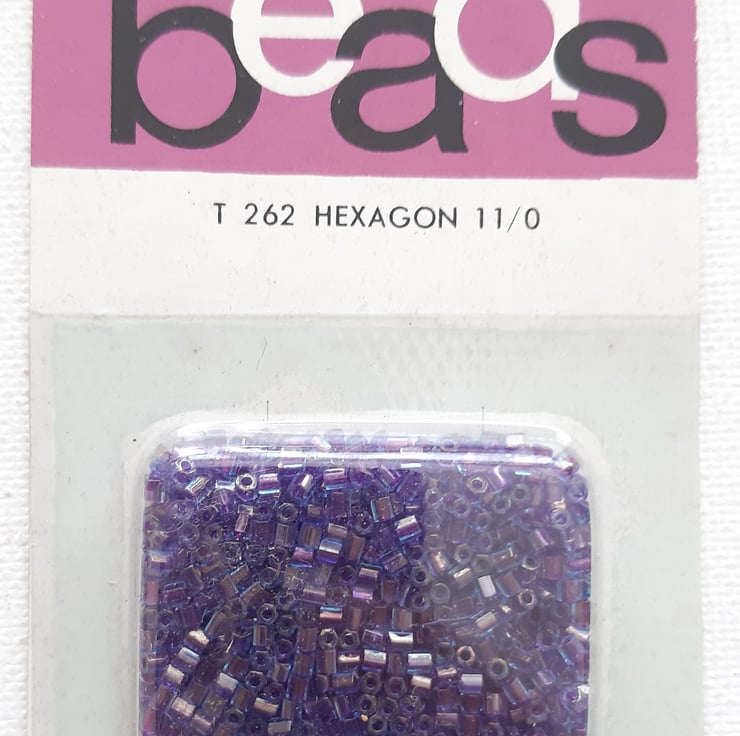 Lovely little metallic purple hexagon beads, size 11. They measure approximately 2mm in length. The packaging is old (see photo) but the contents are in pristine condition (the packet has never been opened). These beads would be suitable for embroidery work, slow stitch projects and general crafting. Unsure of the quantity, but guessing around 10grams in weight - see photo of the amount you will receive (you will get the packet in the photo).