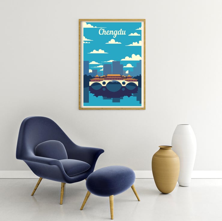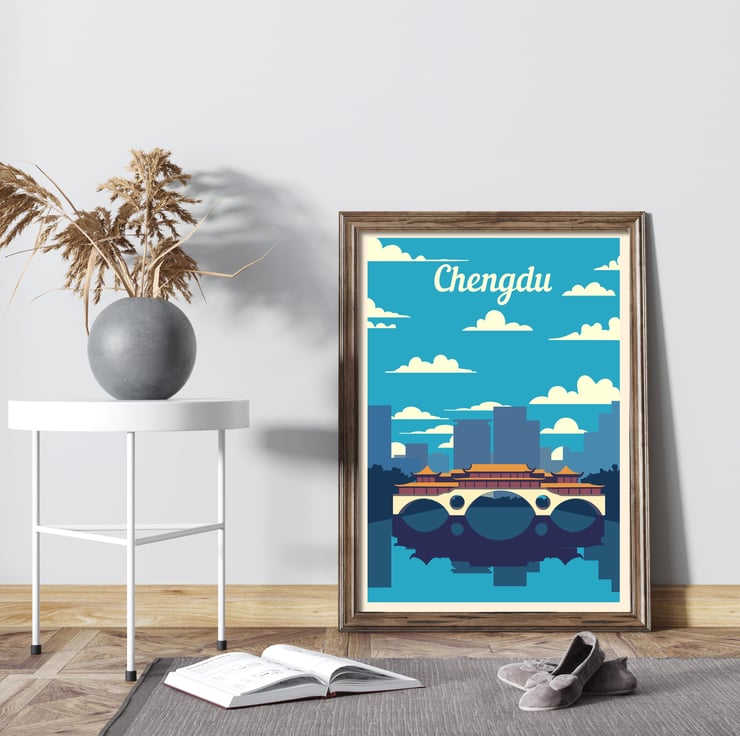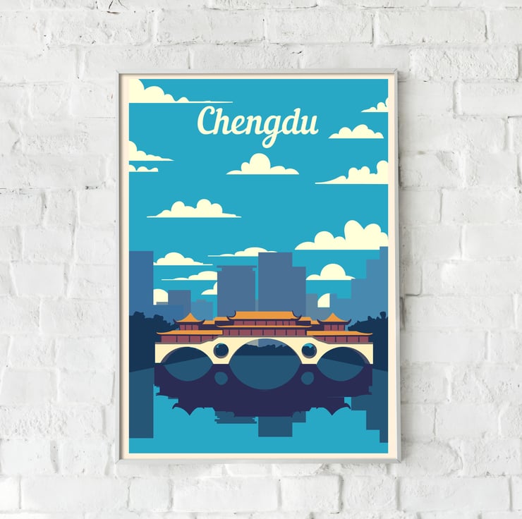 Chengdu retro travel poster, Chengdu print, China travel poster