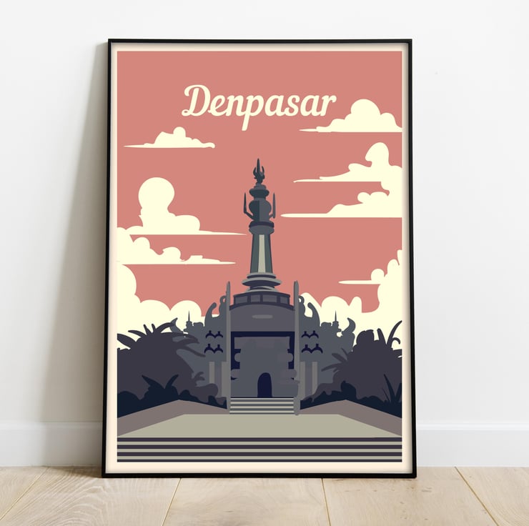 Denpasar retro travel poster, Denpasar print, Indonesia travel poster