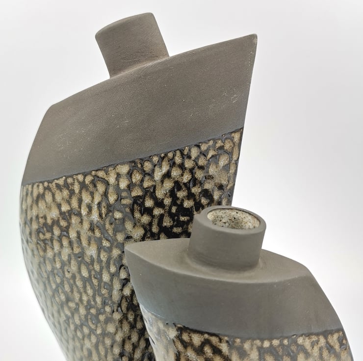 The surface texture is inspired by fish scales. Modelling tools are used to carve into the surface which gives a very tactile finish and 'fish scale' effect.