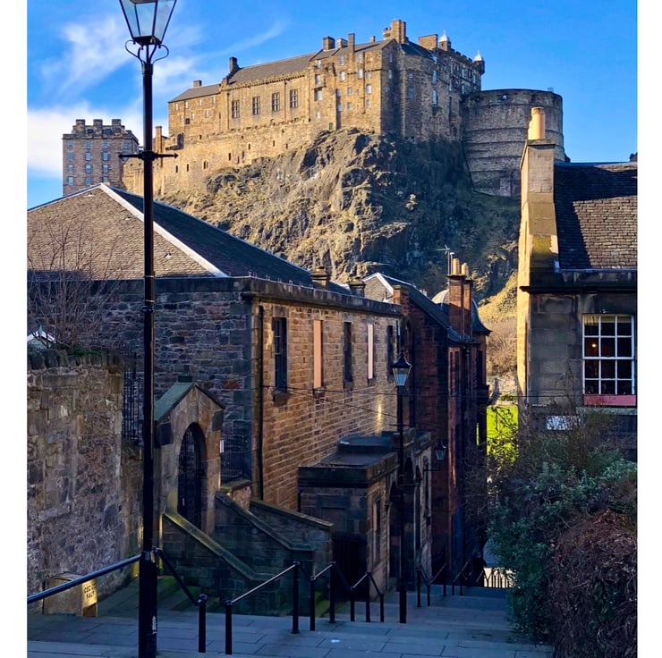 Part of my new Edinburgh collection this is a classic view of the castle from the Vennel steps in the Old Town part of the city. I waited for a sunny day and late afternoon so I could photograph the castle bathed in beautiful golden light.