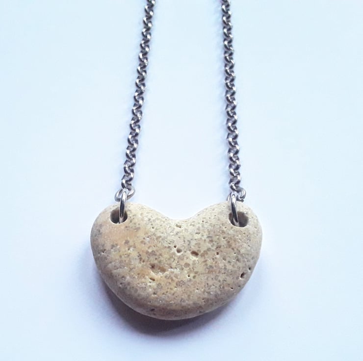 This robust and earthy necklace has been made from a heart-shaped, chunky beach pebble and a sturdy stainless steel belcher/rolo chain.
