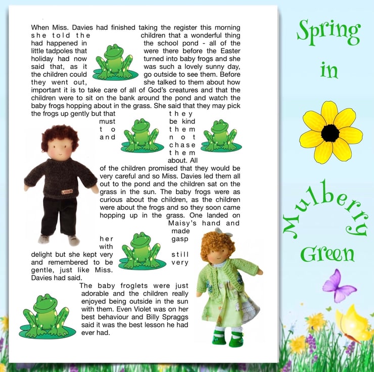 There are other children in Maisy’s class at school - Violet, Billy with his pet rabbit, Amber, Tilly, Rosie and her kittens, Amelia, Ruby, Marigold, Bobby with Max the dog, and the twins Oliver and Olivia, who have a puppy called Oscar. The dolls are all 28cm tall and baby Daisy is 16cm. Maisy and Mo love nothing more than having adventures with their friends. You can read about their adventures on my Facebook and Instagram pages - Maisy Muffin Rag Dolls and on my Mulberry Green Pinterest boards.