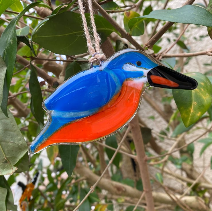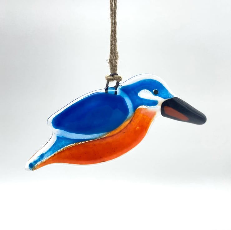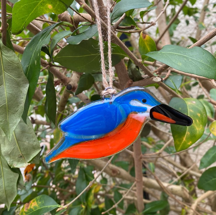 This is a Fused Glass Hanging KINGFISHER.