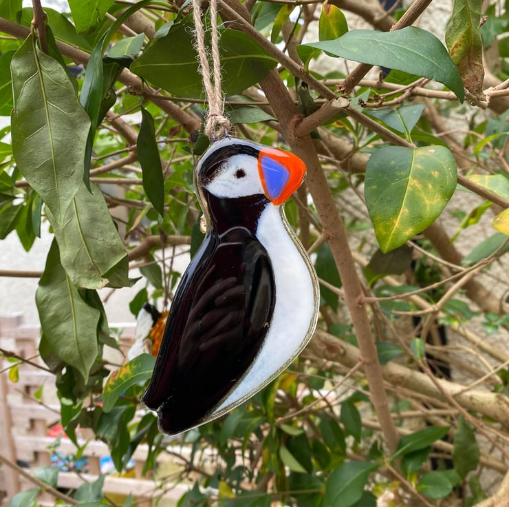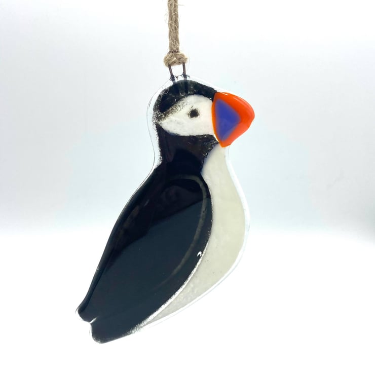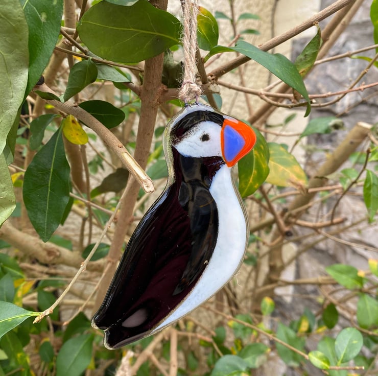 Fused Glass Birds, PUFFIN bird lover gift, British bird, hanging bird