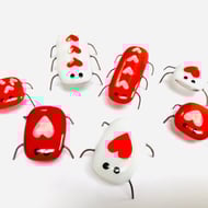 I hand cut each of these birds by hand out of a large sheet of glass, I then decorate using glass powder. They are then loaded in to my kiln to fire. These are not mass produced and may each differ slightly. That's what I love about Handmade that nothing is exactly the same. Once they have been fired I clear, tidy up and get ready to post out to you.