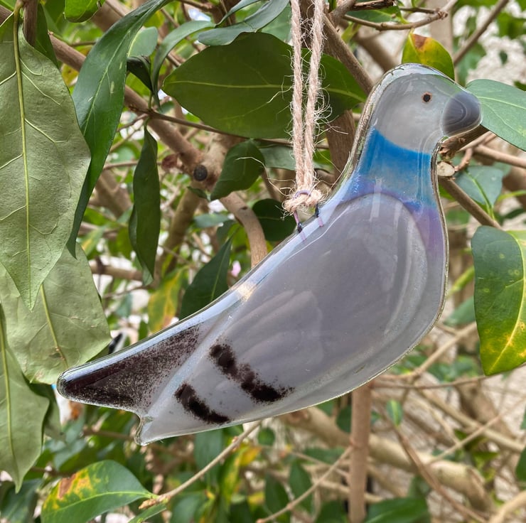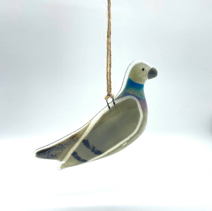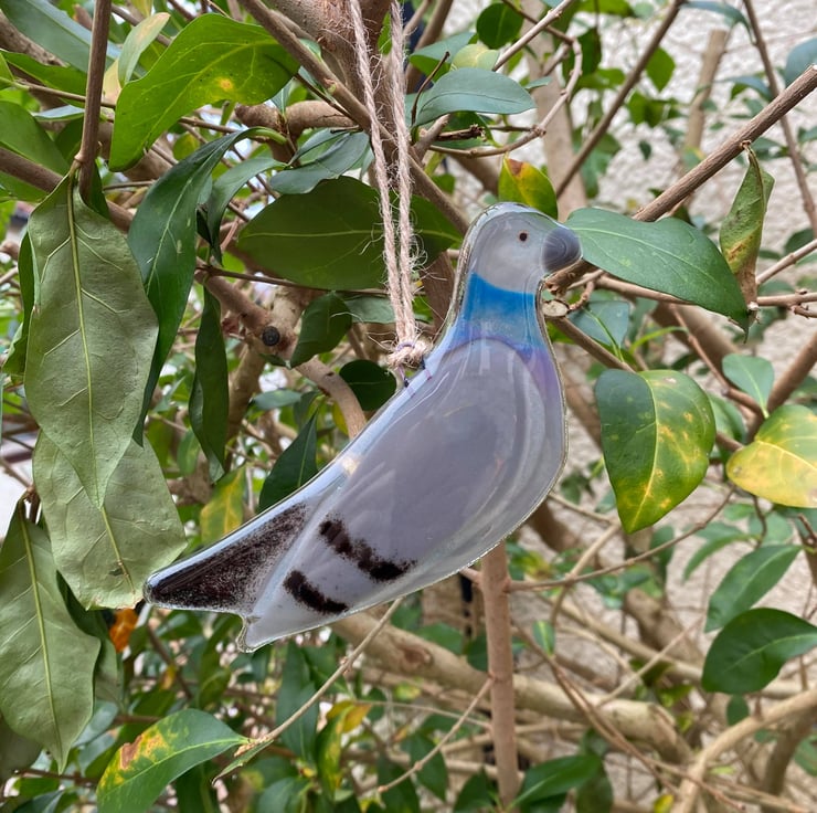 Fused Glass Birds, PIGEON bird lover gift, British bird, hanging bird