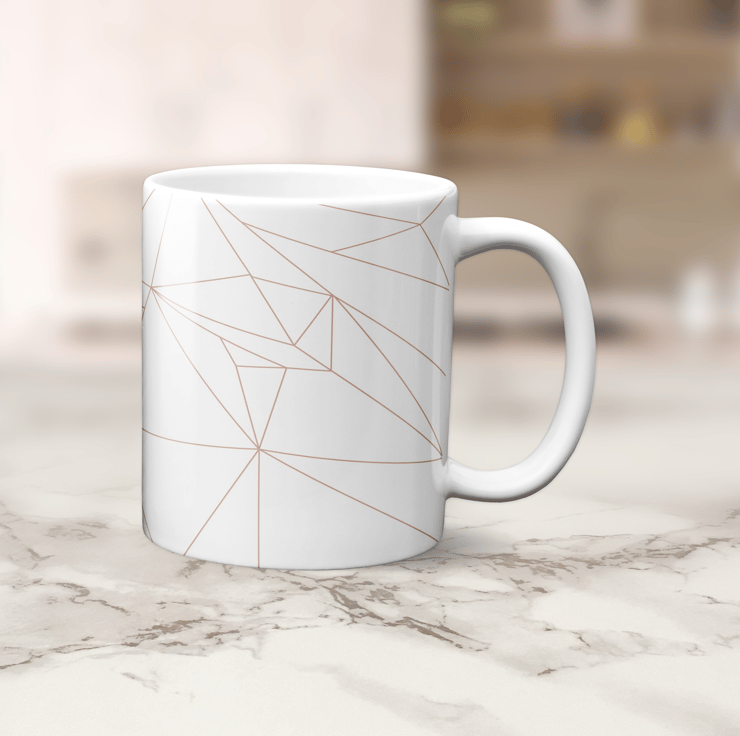 This white ceramic mug with a rose gold geometric pattern is an original design by Shadowbright. This would make a great gift for somebody.