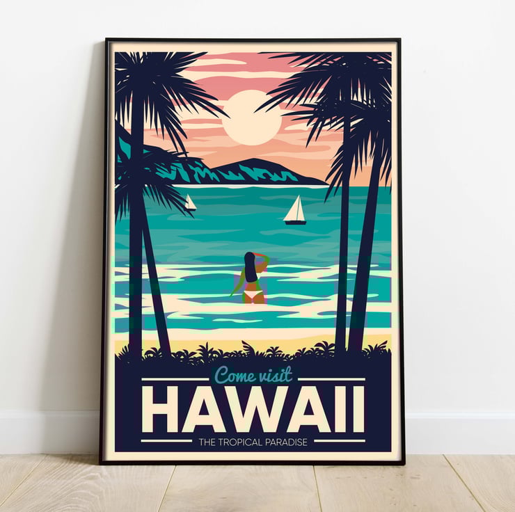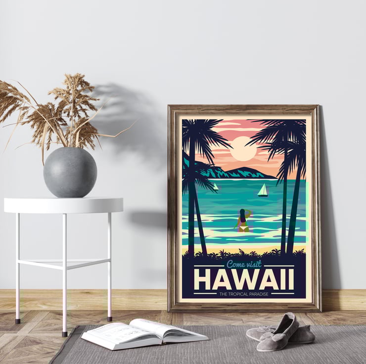 Hawaii retro travel poster, Hawaii paradise wall print, retro wall art