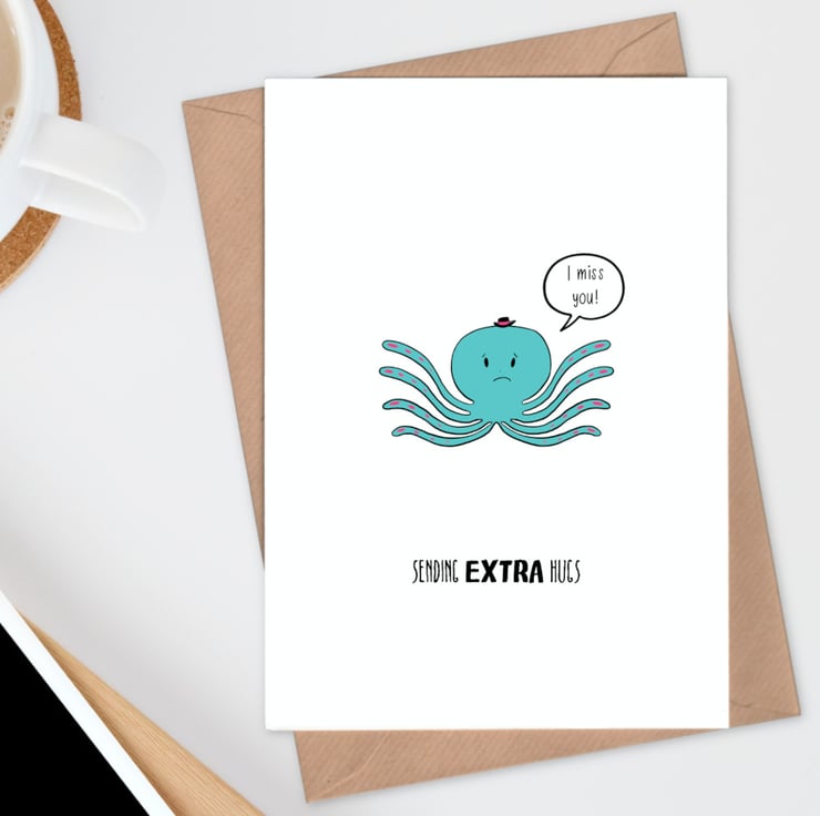 The advantage of being an octopus is that you can send four hugs at once... send these extra hugs to someone special with this cute miss you card.