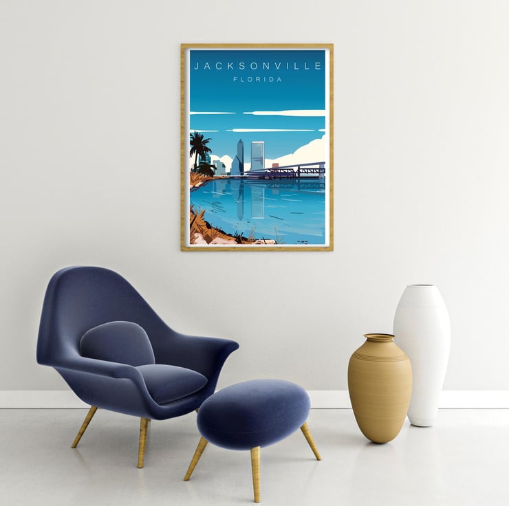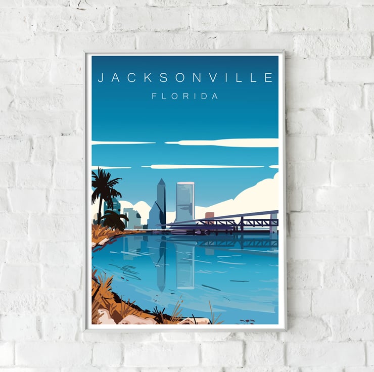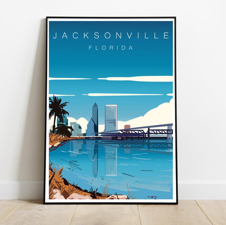 Jacksonville retro travel poster, Jacksonville travel print, USA travel art