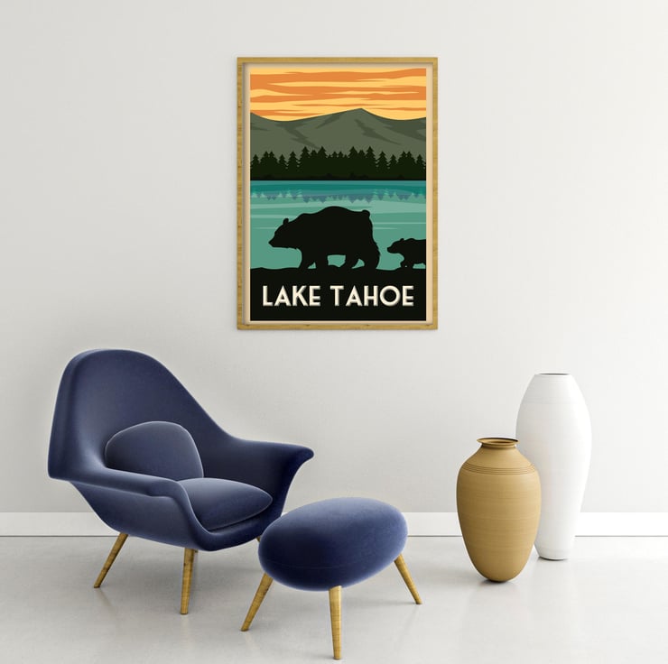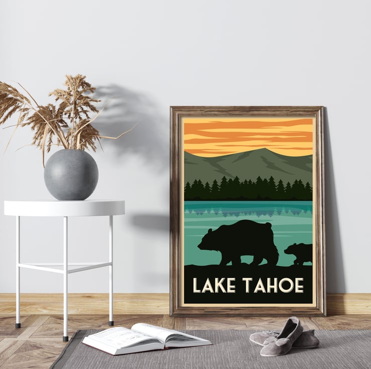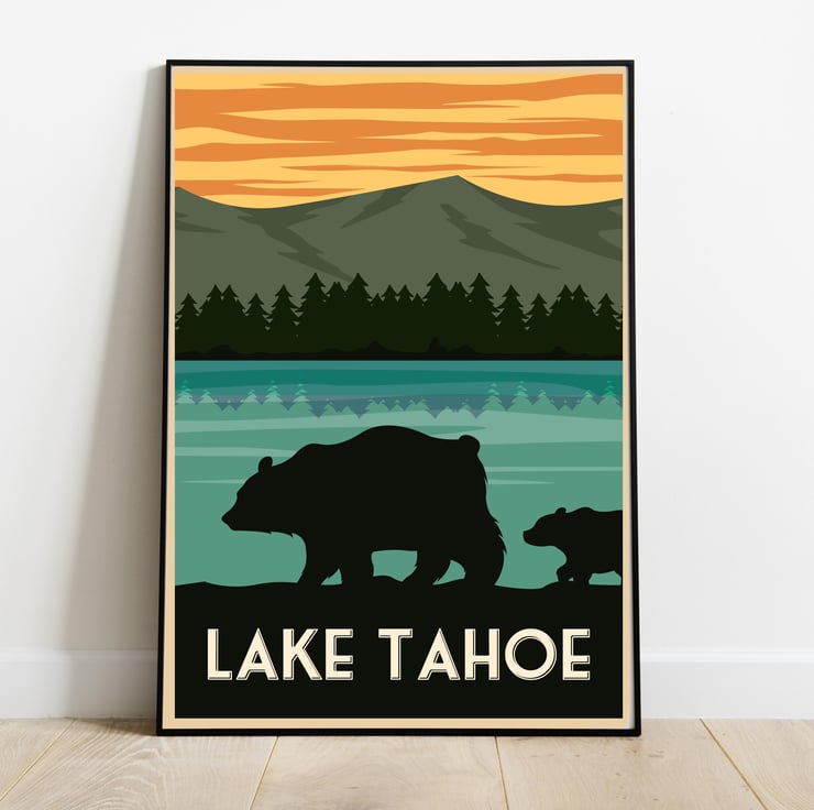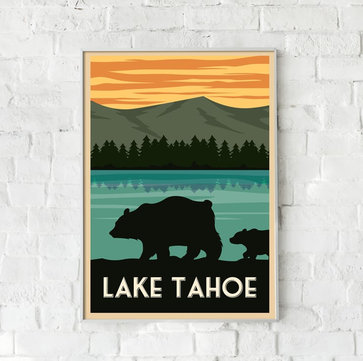 Lake Tahoe retro travel poster, Lake Tahoe travel print, USA travel art