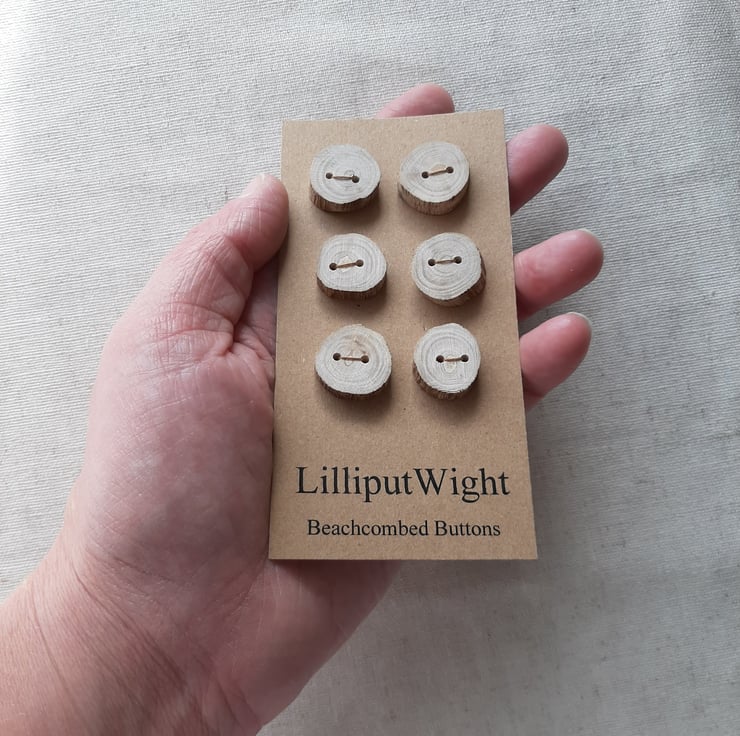 These buttons have been handmade by me in my dad's shed. All of the driftwood that I use has been collected from the beaches of the Isle of Wight.