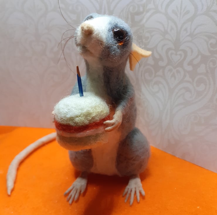 To clean, just flick over with a duster. No wet cloths or water, Ratty doesnt like soggy cake, and it may stain his fur.
