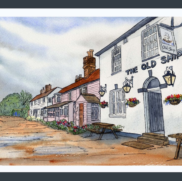 The painting measures 7 x 9 inches and will benefit from being mounted and then framed as pictured in one of the photos