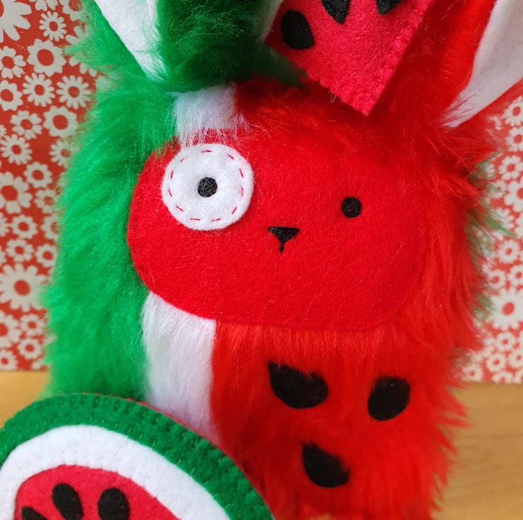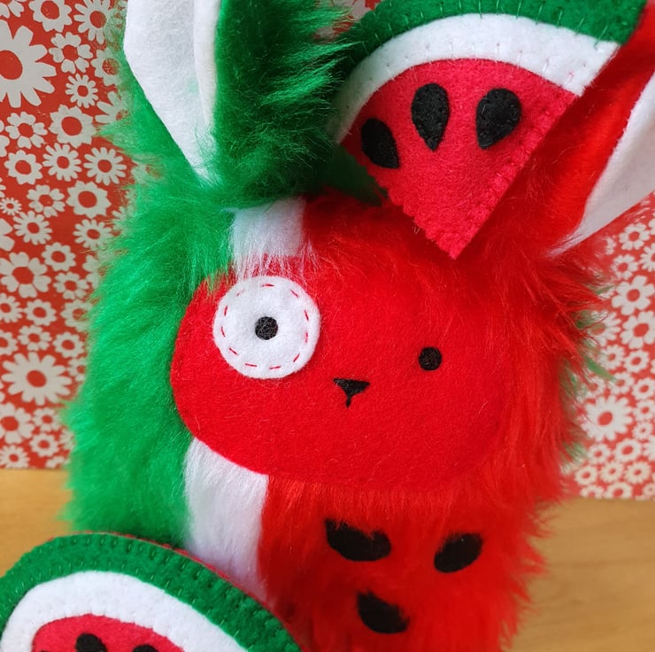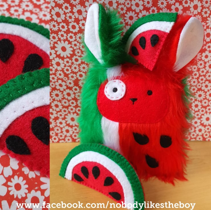 For the last few years, I've been making a fluffy character for each letter of the alphabet. This guy is W for Watermelon!
