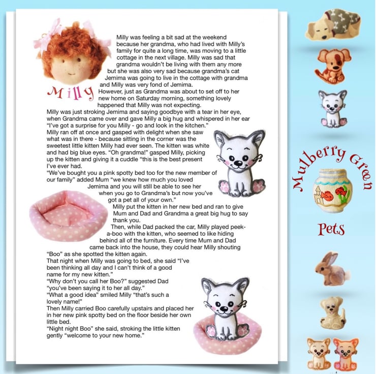 You can read my stories about Mulberry Green on my Facebook and Instagram pages - Maisy Muffin Rag Dolls or alternatively, you can find all of my stories on my Pinterest board - Mulberry Green stories