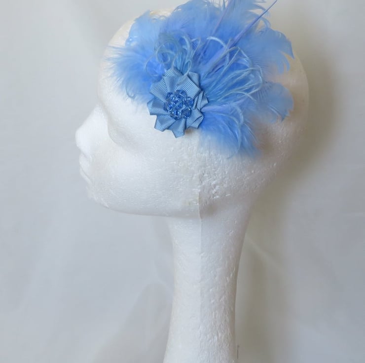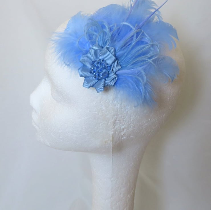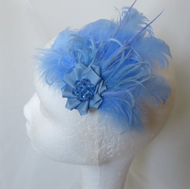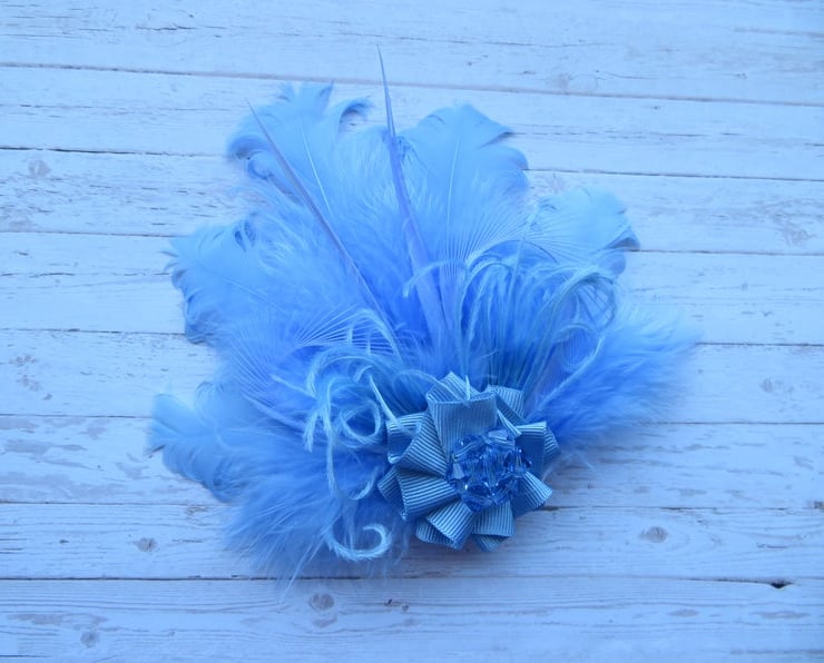 This 'Sky Blue Eva Feather Hair Clip' mini fascinator accessory is ready made